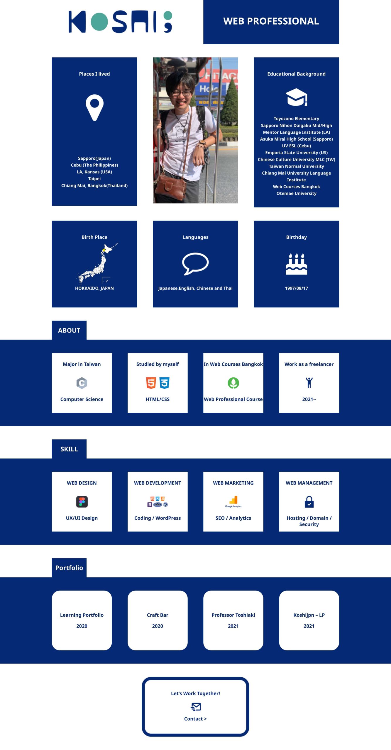 Despite having concise information and being visually clear, especially through icons, after three years, I felt that the color palette and design could be cleaner, and new possibilities had emerged. Therefore, I created a new website. The simplicity of the design has proven versatile, and I believe the core idea has been beneficial for the refreshed Koshijpn site.