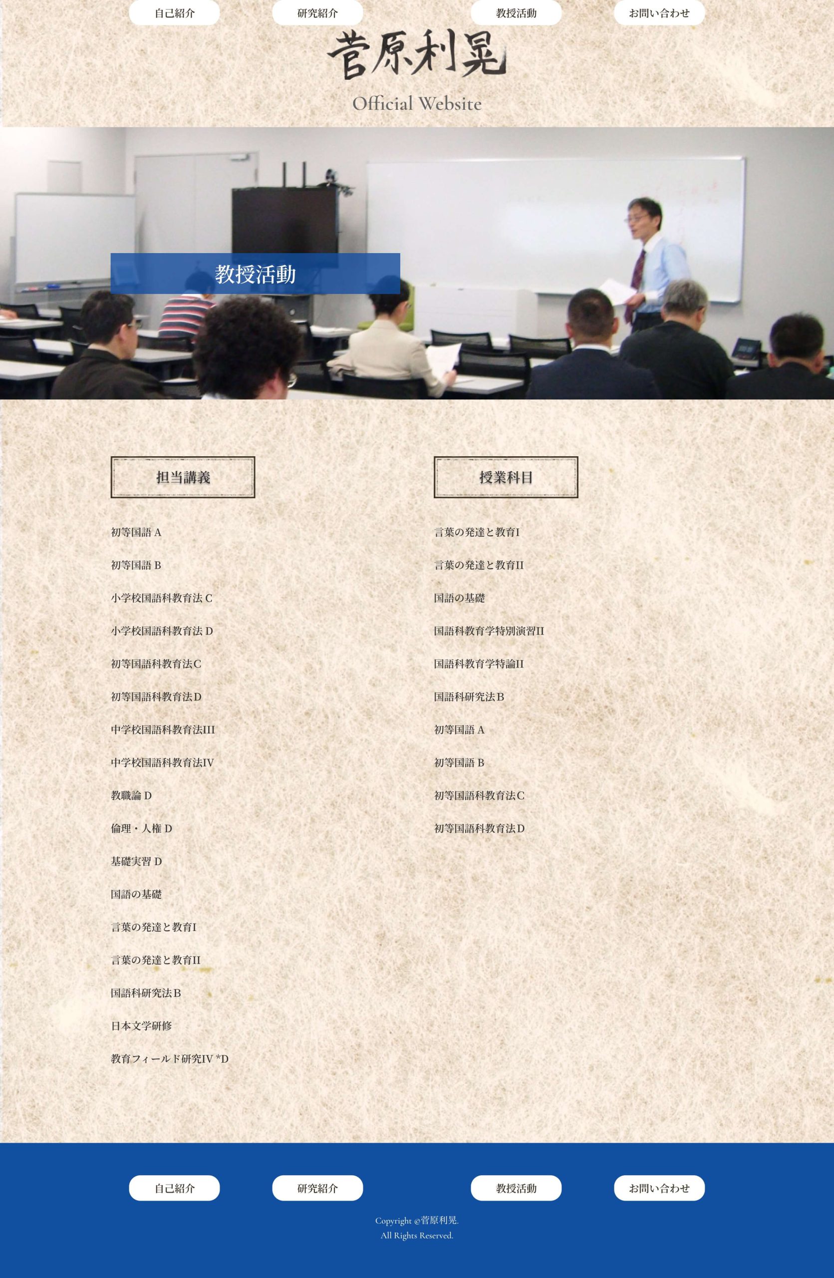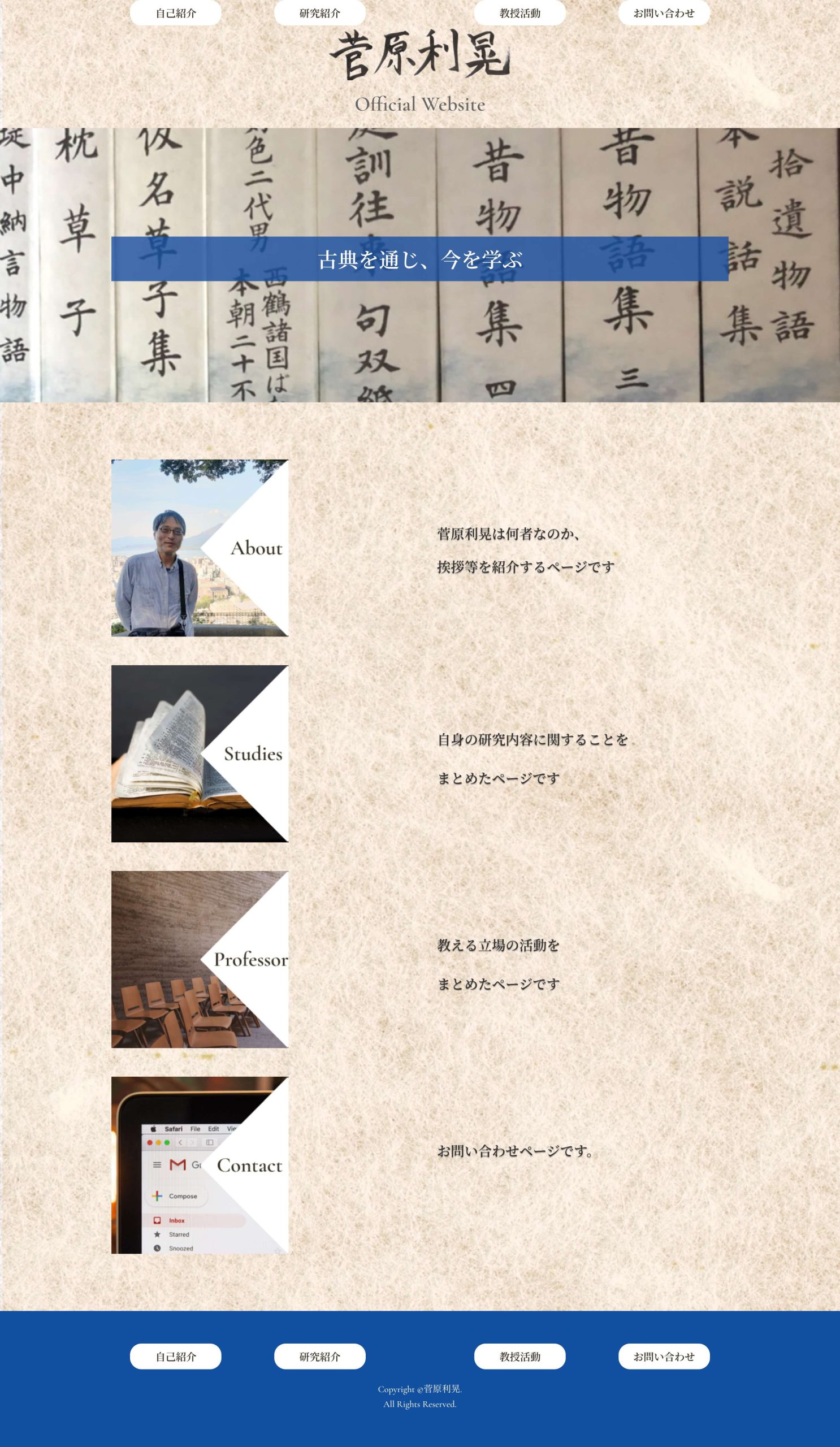 Professor Toshiaki Sugawara’s project was created as the graduation assignment for web courses Bangkok. To align with his teaching focus on Japanese classical literature, the UI was designed with elements that reflect his atmosphere. The site incorporates subtle touches such as traditional Japanese paper backgrounds and fonts, aiming to convey an elegant and refined feel.